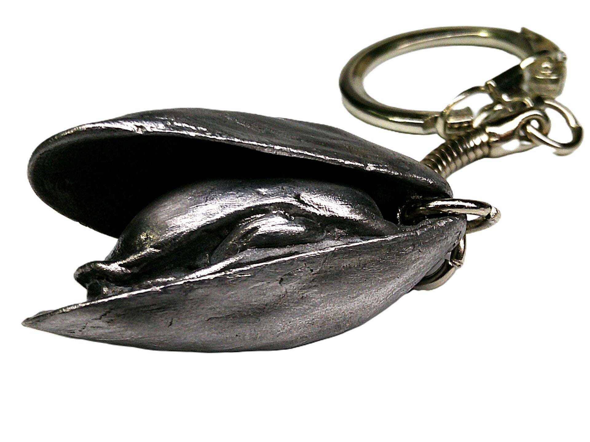 Porte-clés en alliage d'étain sans plomb (étain 95 % antimoine 3 % et zinc 2 %, poids 39 g longueur 42 mm).